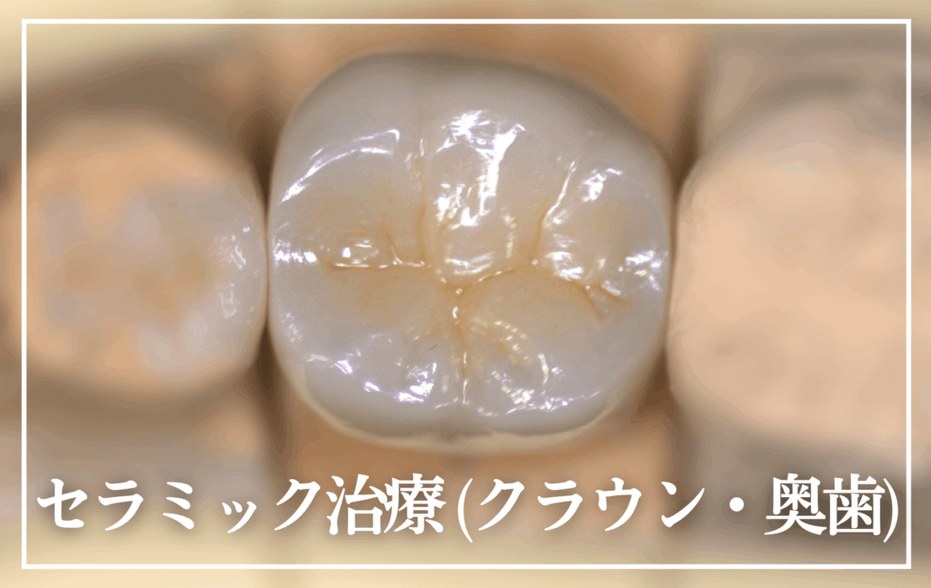 セラミック・クラウンは、通常の保険治療で行われる金属素材にかわり、より審美性・生体親和性・耐久性のバランスが取れた素材として、セラミック素材を使用した治療です。